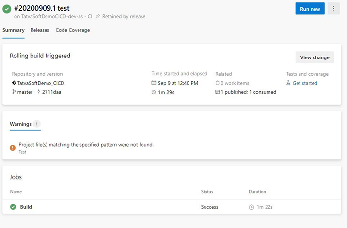 - Further going deeper by clicking on the release title, you will finally reach your release summary, where you can see all executed jobs. You can also find errors if they occurred during deployment.